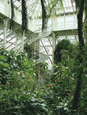 تعتبر الحدائق النباتية الموجودة في كيو ببريطانيا ، أكبر وأشهر حدائق العالم النباتية ، وهي موجودة على نهر التايمز ، غربي لندن بستة كيلومترات ونصف تقريبا. وكان أول تطور لها كمؤسسة علمية برعاية ملكية في القرن الثامن عشر ، وفتحت الحدائق والبيوت الزجاجية للجمهور سنة 1841. وأقدم البيوت الزجاجية فيها هو بيت النخيل ، الذي تم بناؤه عام 1848. ويبلغ إرتفاع الجزءالوسطي منه على 20 مترا ، وتنمو فيه مجموعة بديعة جدا من أشجار النخيل الإستوائية ، والسيكاد وغيرها من النباتات الهامة. وأكبر البيوت الزجاجية ، هو بيت نباتات المنطقة المعتدلة ، وفيه تنمو نباتات من المناطق المعتدلة الدافئة. وتشغل الحدائق مساحة تقدر بحوالي 300 فدان ، وجمالها في الصيف والربيع لا يوصف.