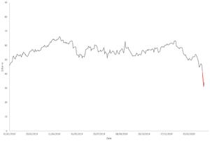 في 8 مارس 2020، بدأت السعودية حرب أسعار ضد روسيا، وهو ما تسبب في سقوط حاد في سعر النفط، فانخفضت كل أسعار النفط الأمريكي بنسبة 34%، وسقط النفط الخام بنسبة 26%، وسقط خام برنت بنسبة 24%.[1] حرب الأسعار أشعلها خلاف أثناء حوار بين منظمة الدول المصدرة للنفط وروسيا حول الخفض المقترح لانتاج النفط أثناء جائحة ڤيروس كورونا 2019-2020. وكانت أسعار النفط قد انخفضت بالفعل بنسبة 30% منذ بداية العام بسبب انخفاض الطلب.[2] حرب الأسعار هي واحدة من الأسباب الرئيسية للانهيار المتفاقم حالياً للسوق العالمي للأسهم.