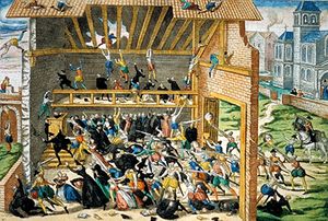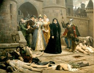 تصوير مذبحة يوم القديس بارثولوميو بريشة فرانسوا دبوا. | ||||||||