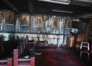 قاعة كنيسة أبو سيفين بعد الحريق.