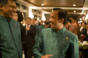 The 50th anniversary of his royal ascension was celebrated on 5 October 2017, he declared during his speech that it was the "most historic day" for both Bruneians and himself.[84] In addition, the Sultan stated that he and his people needed to exercise "reciprocal responsibility".[85] According to press releases from their respective countries, Prime Ministers Lee Hsien Loong of Singapore, Hun Sen of Cambodia, Najib Razak of Malaysia, State Counsellor Aung San Suu Kyi of Myanmar, President Rodrigo Duterte of the Philippines and Joko Widodo of Indonesia were scheduled to attend the festivities.[5][86][87] Among the many royal guests in attendance were Prince Edward and his wife, Sophie.[88]