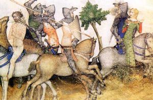 نقش خشبي من الطبعة الثانية لوليام كاكستون من حكايات كانتربري طبعت في عام 1483