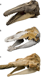 جماجم (a) بلوگا، (b) هجين بلوگا-ناروال، (c) ناروال.