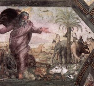 لوحة "خلق الحيوانات" للرسام رافاييل، وهي عبارة عن جصية محفوظة في الطابق الثاني في القصر الرسولي في القصور الباباوية في الفاتيكان. يظهر وحيد القرن إلى يمين الشجرة وفيل إلى يسارها.