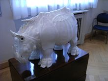 Modern porcelain rhinoceros in the Porcelain Museum in Meissen, based on a version sculpted by Johann Gottlieb Kirchner around 1730.[25] It is clearly based on Dürer's image, with a prominent "Dürer horn".