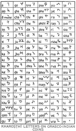 - ^ أ ب R. D. Banerji (April 1920). "The Kharosthi Alphabet". The Journal of the Royal Asiatic Society of Great Britain and Ireland. 52 (2): 193–219. doi:10.1017/S0035869X0014794X. JSTOR 25209596.