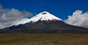 Cotopaxi, Ecuador (5,897 m), seen from 3,700 m, with the snow line at approximately 5,000 m