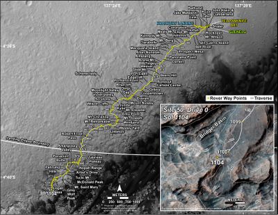 Traverse map - route from Landing to slopes on Mount Sharp (September 11, 2014).