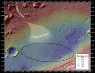 Curiosity's landing site - Blue oval marks "Base of Mount Sharp" (August 17, 2012).