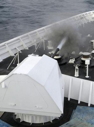 USCGC Duane (WPG-33) shelling targets in Vietnam in 1967, where they played an active role in Operation Market Time.