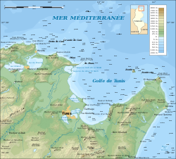 مدينة قرطاج الشهيرة بنيت على ساحل الخليج، وتلك المنطقة هي اليوم أحد ضواحي تونس العاصمة.