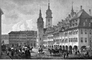 Geologist Georgius Agricola (1494-1555), author of several significant works on mining and metallurgy including the landmark treatise De Re Metallica, became city physician of Chemnitz in 1533 and lived here until his death in 1555. In 1546 he was elected a Burgher of Chemnitz and in the same year also was appointed Burgomaster (lord mayor), serving again in 1547, 1551, and 1553. In spite of having been a leading citizen of the city, when Agricola died in 1555 the Protestant Duke denied him burial in the city's cathedral due to Agricola's allegiance to his Roman Catholic faith. Agricola's friends arranged for his remains to be buried in more sympathetic Zeitz, approximately 50 km away.[3] Chemnitz became a famous trading and textile manufacturing town.