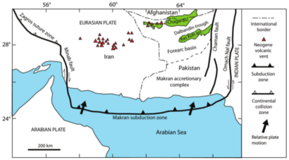 - ^ Regard, V.; Hatzfeld, D.; Molinaro, M.; Aubourg, C.; Bayer, R.; Bellier, O.; Yamini-Fard, F.; Peyret, M.; Abbassi, M. (2010). "The transition between Makran subduction and the Zagros collision: recent advances in its structure and active deformation". Geological Society, London, Special Publications. 330 (1): 43–64. doi:10.1144/SP330.4.