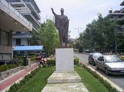 The statue of Pericles in the main entrance to the city of Cholargos | |