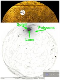 الكسوف الشمسي يبين تاريخ 7 مارس 51 ق.م.: وتمثله دائرة تحتوي الإلهة إيزيس ممسكة رباح (بابون) (الإله تحوت) من ذيله.