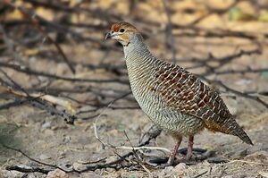 - ^ Tehsin, Raza; Moezi, Abdul Amir (1993). "An unusual nesting of a Grey Partridge Francolinus pondicerianus (Gmelin)". J. Bombay Nat. Hist. Soc. 90 (1): 91–92.