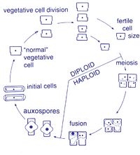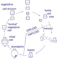 Sexual reproduction of a pinnate diatom (morphological isogamy, physiological anisogamy)
