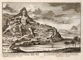 قبل بناء الإسكندرية، عندما كان الإسكندر يتطلع لبناء مدينة تمجيداً لنفسه، اقترح دينوقراطس بناء مدينة على جبل آثوس.[2] لم يعجب الإسكندر بالاقتراح حيث لم يأخذ دينوقراطس في الاعتبار الظروف الميعشية للسكان عندما اعترف بعد التخطيط لزراعة الحبوب بالقرب من الدينة؛ بدلاً من ذلك، كان سيتم نقل الحبوب عن طريق البحر.[3] موقع الإسكندرية الحالي هو أكثر خصوبة وانفتاحاً عن التضاريس القاسية لجبل آثوس.