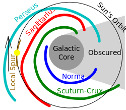 يتلو ذراع قنطورس ذراع الدجاجة المجري Norma Arm من جهة مركز المجرة. ويبدأ ذراع قنطورس بالقرب من مركز المجرة ويسمى في هذا الجزء ذراع الترس، ويمتد خارجا مقتربا من ذراع رامي القوس، ويسمى جزؤه هذا ذراع الصليب الجنوبي.
