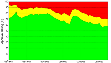 The U.S. publicly promised never to invade Cuba and privately agreed to remove its missiles in Italy and Turkey; the missiles were by then obsolete and had been supplanted by submarines equipped with UGM-27 Polaris missiles.[118] In the aftermath of the crisis, a Moscow–Washington hotline was established to ensure clear communications between the leaders of the two countries.[119] The Cuban Missile Crisis brought the world closer to nuclear war than at any point before or since. In the end, "the humanity" of the two men prevailed.[120] The crisis improved the image of American willpower and the president's credibility. Kennedy's approval rating increased from 66% to 77% immediately thereafter.[121] Kennedy's handling of the Cuban Missile Crisis has received wide praise from many scholars, although some critics fault the Kennedy administration for precipitating the crisis with its efforts to remove Castro.[122][123] Khrushchev, meanwhile, was widely mocked for his performance, and was removed from power in October 1964.[124] According to Anatoly Dobrynin, the top Soviet leadership took the Cuban outcome as "a blow to its prestige bordering on humiliation."[125]