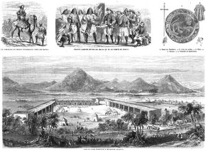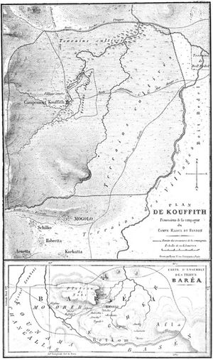In Khartoum, Du Bisson made numerous demands on الحاكم العام، موسى باشا حمدي، who eventually declared him persona non grata. In early 1864 he led his band to Kassala, thence eastward to Kufit.[1] There he claimed that he had the support of the French government to punish the Ethiopian emperor Tewodros II for having declared the French vice-consul Guillaume Le Jean persona non grata in Ethiopia. The British formally protested Du Bisson's presence, but the French government denied any involvement. Nevertheless, the presence of a group of sixty armed Europeans on his border—and who had only gotten there with the connivance of the khedive and the governor-general—led Tewodros to suspect a French–Turkish–Egyptian alliance against him.[2]