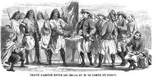 In 1863, Du Bisson recruited a band of directionless Europeans in the cafés of مصر and marched them down to Khartoum, where he pronounced it his intention to establish a colony for the production of cotton. Crossing into the Sudan, his party had been inspected by Egyptian customs and was found to be in possession of numerous arms and even cannon. This has led to the supposition that he may have been acting on the orders of Khedive İsmail Paşa, who was planning an invasion of Ethiopia. After inquiries with the French authorities regarding his credentials, İsmail abandoned his plans and Du Bisson was on his own.[1]