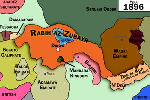 Wanting to modernize his army, Rabih attempted in 1895 to make an accord with Royal Niger Company in Yola and Ibi so to obtain gunpowder and ammunition, but without success. He started confronting the Company in 1896 and the following year even started marching on Kano, while his vassal Muhammad al-Senussi in Dar al Kuti founded a fortified capital, Ndele, between Bahr Aouk and the Ubangi River, which the Senussites held until 1911.