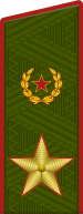 While the general armii wore shoulder insignia with four small stars, the marshal and admiral flota wore one single large star on their shoulder boards, and the glavnii marshal the same large star with a laurel wreath, very similar to the modern army general insignia of the Russian Army.