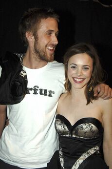 Later in 2004, McAdams starred opposite fellow Canadian Ryan Gosling in the romantic drama The Notebook, based on Nicholas Sparks' novel of the same name. She played Allie Hamilton, a wealthy Southern belle who has a forbidden love affair with Gosling's poor labourer, Noah Calhoun.[18][47] McAdams spent time in Charleston, South Carolina, prior to filming to familiarize herself with the Southern accent,[48] and took ballet and etiquette classes.[31] Filming took place from late 2002 to early 2003.[49] Although McAdams and Gosling became romantically involved in 2005, they had a combative relationship on set.[50][51] "We inspired the worst in each other," Gosling has said. "It was a strange experience, making a love story and not getting along with your co-star in any way."[52] At one point, Gosling asked the film's director Nick Cassavetes to "bring somebody else in for my off-camera shot" because he felt McAdams was being uncooperative.[51] Stephen Holden of The New York Times praised the "spontaneous and combustible" performances of the two leads[53] while Roger Ebert was won over by the "beauty and clarity" of McAdams's performance.[54] Michael Wilmington of the Chicago Tribune declared her "a real discovery" who "infuses young Allie with that radiant, breathlessly winning ingénue grace and charm that breaks hearts".[55] The film grossed over $115 million worldwide.[56] McAdams won an MTV Movie Award and four Teen Choice Awards.[44][57] Entertainment Weekly has said that the movie contains the All-Time Best Movie Kiss[58] while the Los Angeles Times has included a scene from the film in a list of the 50 Classic Movie Kisses.[59] The Notebook has appeared on many Most Romantic Movies lists.[60][61][62][63] "I'm so grateful to have a film that people respond to in that way", McAdams told Elle in 2011. "It was a big deal."[64]