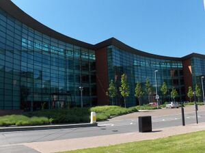 Global pharmaceutical giant, Bayer Life Sciences relocated to Reading's Green Park Business Park in 2016.[12] Reading has a significant historical involvement in the information technology industry, largely as a result of the early presence in the town of sites of International Computers Limited[13] and Digital Equipment Corporation.[14] Other technology companies with a significant presence in the town include Huawei Technologies, Pegasystems, Access IS, CGI Inc, Agilent Technologies,[15] Cisco,[16] Ericsson,[17] Symantec,[16] Verizon Business,[18] and Commvault.[19] These companies are distributed around Reading or just outside the borough boundary, some in business parks including Thames Valley Park in nearby Earley, Green Park Business Park and Arlington Business Park.