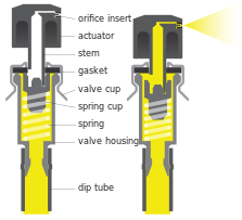 A typical paint valve system will have a "female" valve, the stem being part of the top actuator. The valve can be preassembled with the valve cup and insta can as one piece, prior to pressure-filling. The actuator is added later.