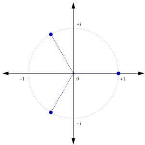 الدالة الأسية ez يمكن تعريفها بأنها نهاية (1 + z/N)N, باقتراب N من مالانهاية، وبذلك فإن e هي نهاية (1 + /N)N. وفي هذا التحريك، فإن N تأخذ قيم مختلفة متزايدة من 1 إلى 100. حساب (1 + /N)N يُعرض كتأثير مجمَّع لعمليات ضرب مكررة N مرة في complex plane، وتكون النقطة النهائية هي القيمة الفعلية لـ (1 + /N)N. يمكن رؤية أنه كلما أصبحت N أكبر، فإن (1 + /N)N تقترب من النهاية −1. ولذلك، e = −1, تُعرف بإسم هوية اويلر.