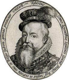 روبرت ددلي، إرل لستر الأول Robert Dudley, 1st Earl of Leicester، KG (24 June 1532 or 1533[note 1] – 4 September 1588) was an English nobleman and the favourite and close friend of إليزابث الأولى from her first year on the throne until his death. The Queen giving him reason to hope, he was a suitor for her hand for many years.