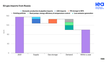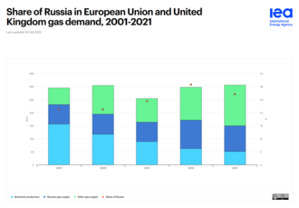 In response to the invasion of Ukraine by Russia, the European Commission and International Energy Agency presented a plan to reduce gas imports from Russia by two thirds within a year, and completely by 2030.[7][8]