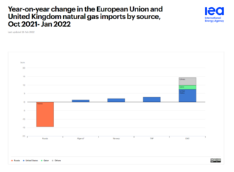 - ^ "How Europe can cut natural gas imports from Russia significantly within a year". الوكالة الدولية للطاقة. 2022-03-03. Retrieved 2022-06-19.