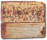During the Byzantine millennium, hardly a year passed without a military campaign. Soldiers were a normal part of everyday life, much more so than in modern Western societies.[53] While it is difficult to draw a distinction between Roman and Byzantine soldiers from an organizational aspect, it is easier to do so in terms of their social profile.[53] The military handbooks known as the Taktika continued a Hellenistic and Roman tradition, and contain a wealth of information about the appearance, customs, habits, and life of the soldiers.[54]