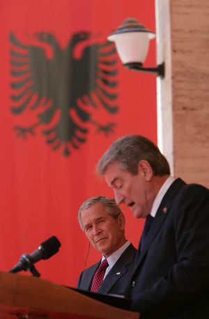 Sali Berisha and George W. Bush in Tirana, June 2007