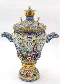 ساموفار روسي من الفضة والمينا، أواخر القرن 19