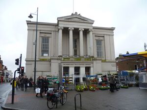 A street market on Wednesdays and Saturdays, founded by Abbot Ulsinus, still flourishes.[14] In 1553, Henry's son Edward VI sold the right to hold the market to a group of local merchants and landowners via letters patent which also incorporated St Albans as a borough.[18] The old market hall, which dated from around 1596, was replaced by the Corn Exchange in 1857.[19]