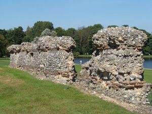 St Albans Abbey and the associated Anglo-Saxon settlement were founded on the hill outside the Roman city where it was believed St Alban was buried. An archaeological excavation in 1978, directed by Martin Biddle, failed to find Roman remains on the site of the medieval chapter house.[12] As late as the eighth century the Saxon inhabitants of St Albans nearby were aware of their ancient neighbour, which they knew alternatively as Verulamacæstir or, under what H. R. Loyn terms "their own hybrid", Vaeclingscæstir, "the fortress of the followers of Wæcla", possibly a pocket of British-speakers remaining separate in an increasingly Saxonised area.[13]