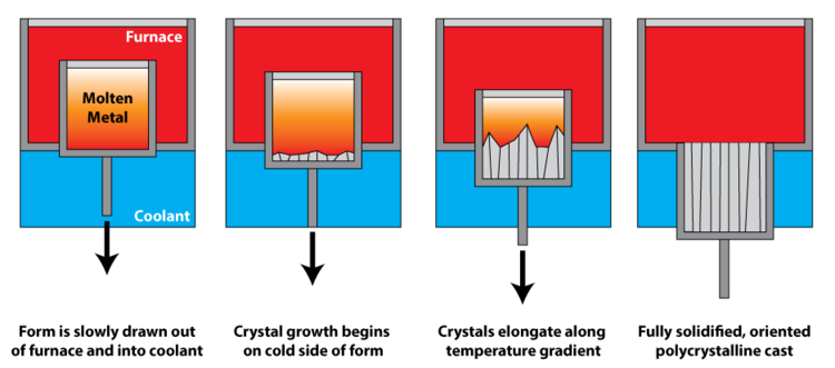 In the 60s and 70s, metallurgists changed focus from alloy chemistry to alloy processing. Directional solidification was developed to allow columnar or even single-crystal turbine blades. Oxide dispersion strengthening could obtain very fine grains and superplasticity.