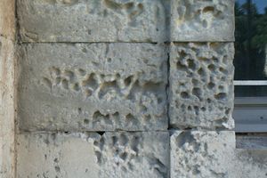 أسباب التدهور المادي تاتي من ظواهر الإشعاع والتجميد والرياح. التأثيرات الناجمة عن وجود هذه العوامل هي ممثلة من وجود تبلور الأملاح (salt crystallization). من أهم أشكال التدهور المتعلقة بتبلور الأملاح، هي التجاويف (alveolization)، الإزهار، التآكل، الانهيار، التقشير، التفكك. ظاهرة التجاويف (alveolization): هي التدهور (degradation) الذي يحدث مع تشكيل تجاويف باحجام وشكال متغيرة. الحويصلات غالبا ما تكون مترابطة وموزعه بشكل غير منتظم.