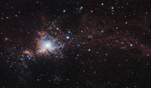 This wide-field view of the Orion Nebula (Messier 42), was taken with the VISTA infrared survey telescope at ESO's Paranal Observatory in Chile.