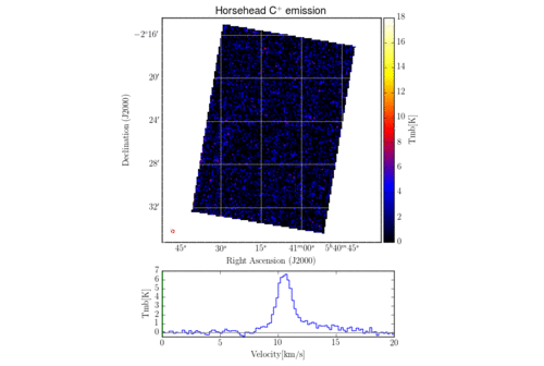 انقر هنا للحصول على خريطة متحركة – سديم رأس الحصان في كوكبة الجبار – المناطق الصفراء والبيضاء يضمان أشد إشعاع من ذرات الكربون (مارس 2016).