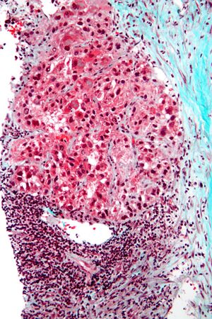 | Hepatocellular carcinoma in an individual who was hepatitis C positive. Autopsy specimen. | |