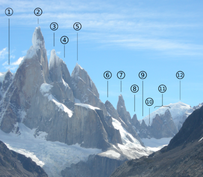 1. ^ "Cerro Torre". Peakbagger.com. this prominence value appears to be based on a summit elevation of 3,102 m.
