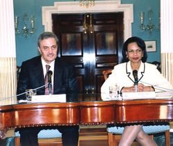 الأمير سعود الفيصل مع كوندوليزا رايس.