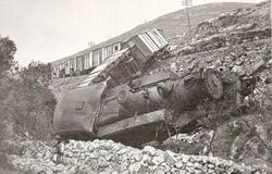 Security measures failed to stop attacks on the railway. One attack damaged a Sentinel railcar.[51] In October 1937 a more serious attack damaged a passenger train and prompted a further decline in passenger numbers.[51] In 1938 sabotage derailed 44 trains, damaged 33 rail-mounted armoured cars, destroyed 27 stations and other buildings, damaged 21 bridges and culverts and destroyed telephone and signalling equipment and water supplies.[51] A member of the Survey of Palestine recalled that "nearly all the stations on the railway had been burnt".[52] For more than one period night running became so dangerous that it was suspended.[53] In September 1938 first the Jerusalem line and then El Kantara line were closed by extensive sabotage.[53] After the latter was reopened in October, Haifa – El Kantara trains were run only three days per week compared with the previous daily service.[54] The worst year was 1938, in which 13 railway workers were killed and 123 injured.[54]