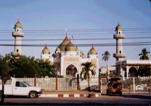 The Hikayat Patani suggests the name Patani means "this beach" which is "pata ni" (pantai ini) in the local Malay language. In this story, a ruler went hunting one day and saw a beautiful white mouse-deer the size of a goat, which then disappeared. He asked his men where the animal had gone, and they replied: "Pata ni lah!" This ruler then ordered a town be built where the mouse-deer had disappeared it was then named after "this beach". The founder is named in some sources as either Sri Wangsa or Phaya Tunakpa, a ruler of Kota Malikha or Kota Mahligai.[5][6] The first ruler of Patani (some sources say his son) later converted to Islam and took the name Sultan Ismail Shah or Mahmud Shah.[7]