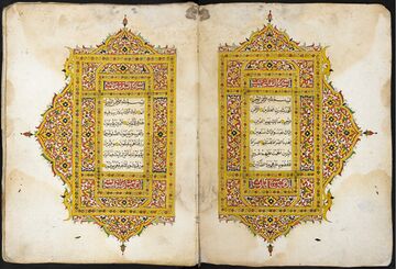 Double-page opening of a Malay Qur’an manuscript from Patani. Second half of the 19th century. British Library